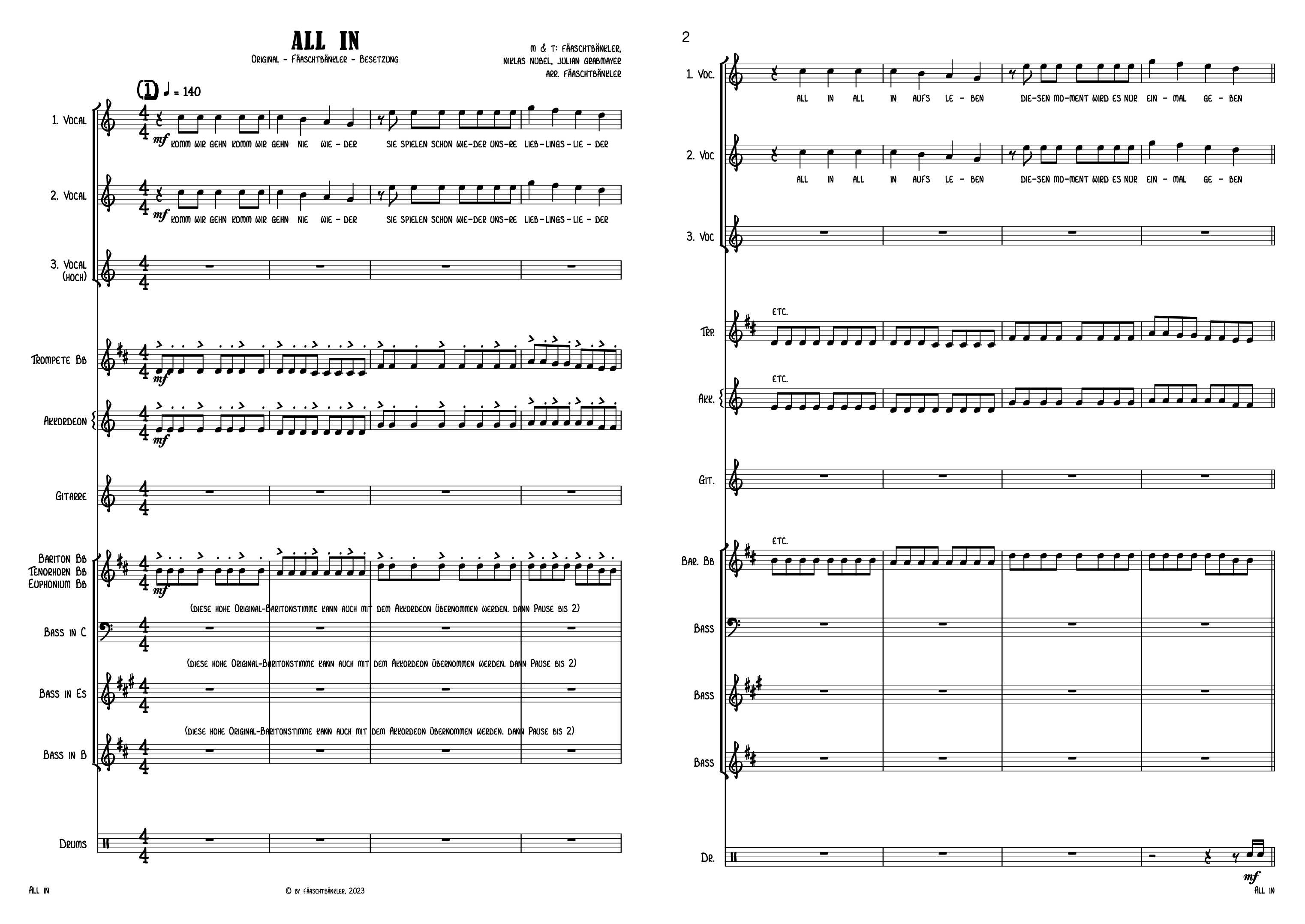 Die Noten sind urheberrechtlich geschützt und dürfen nur für den Eigengebrauch (öffentliche & private Aufführungszwecke jeglicher Art) verwendet werden. Vereinsinterne Vervielfältigung ist gestattet. Die Weitergabe der Noten an Dritte ist nicht erlaubt.