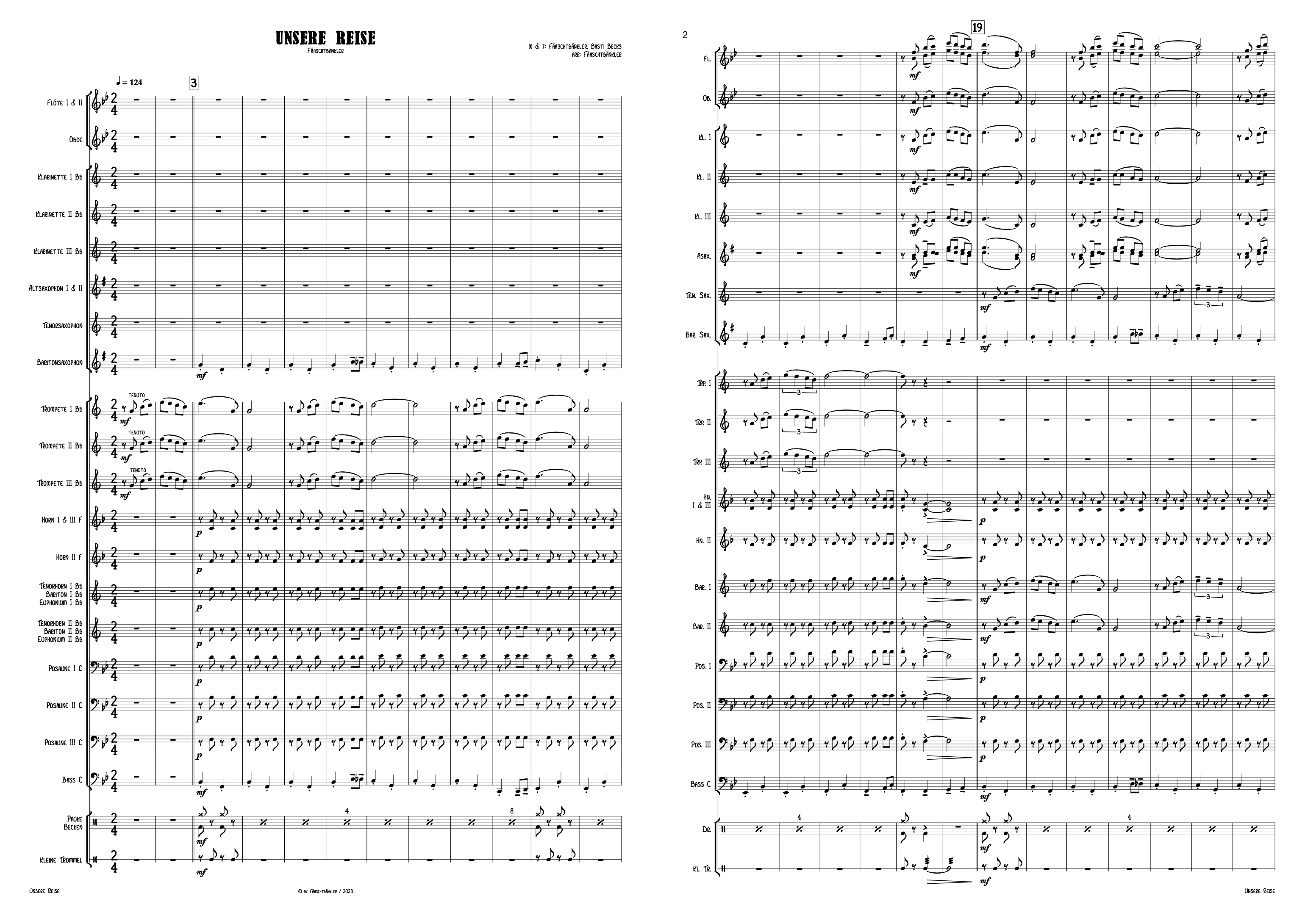 Die Noten sind urheberrechtlich geschützt und dürfen nur für den Eigengebrauch (öffentliche & private Aufführungszwecke jeglicher Art) verwendet werden. Vereinsinterne Vervielfältigung ist gestattet. Die Weitergabe der Noten an Dritte ist nicht erlaubt.