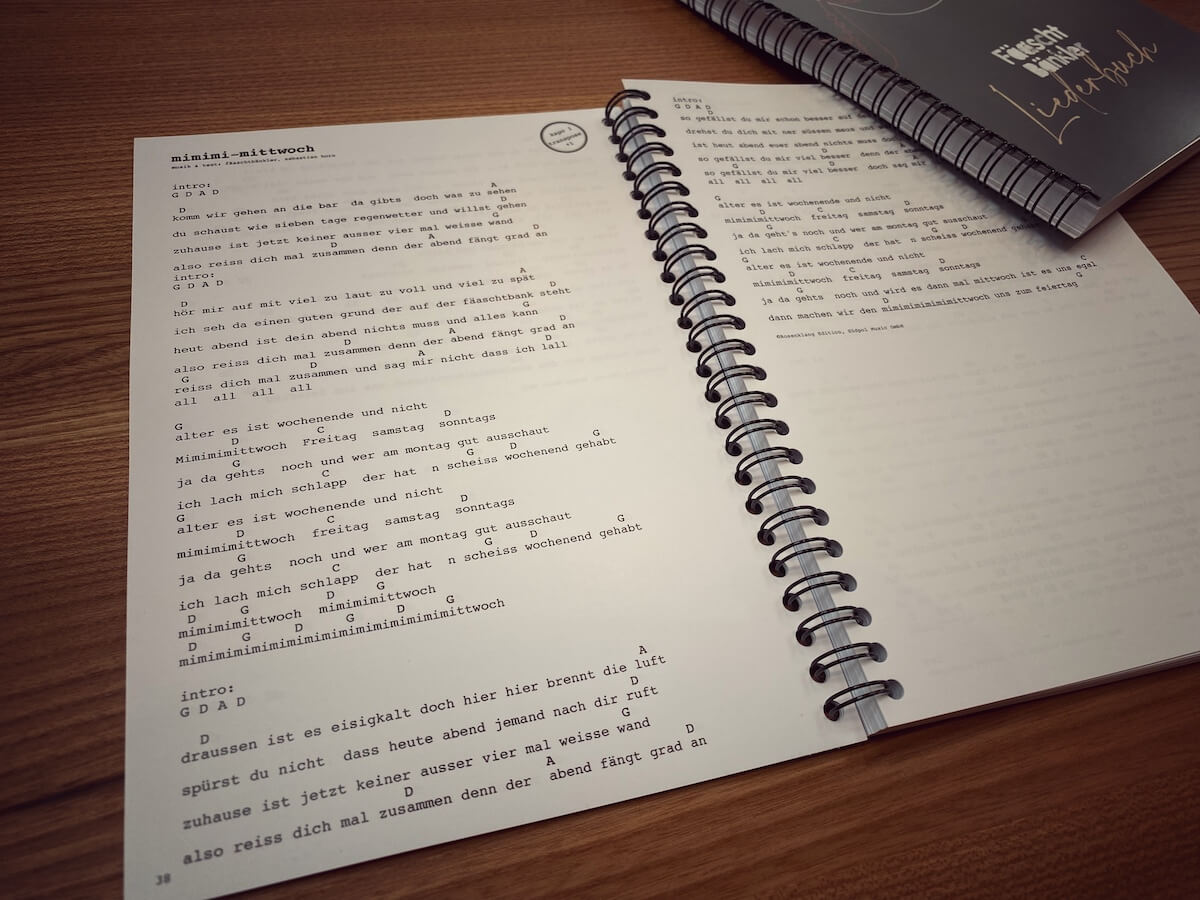 FäaschtBänkler-Liederbuch mit Texten & Akkorden in handlichem A5-Format mit Metall-Ringbindung