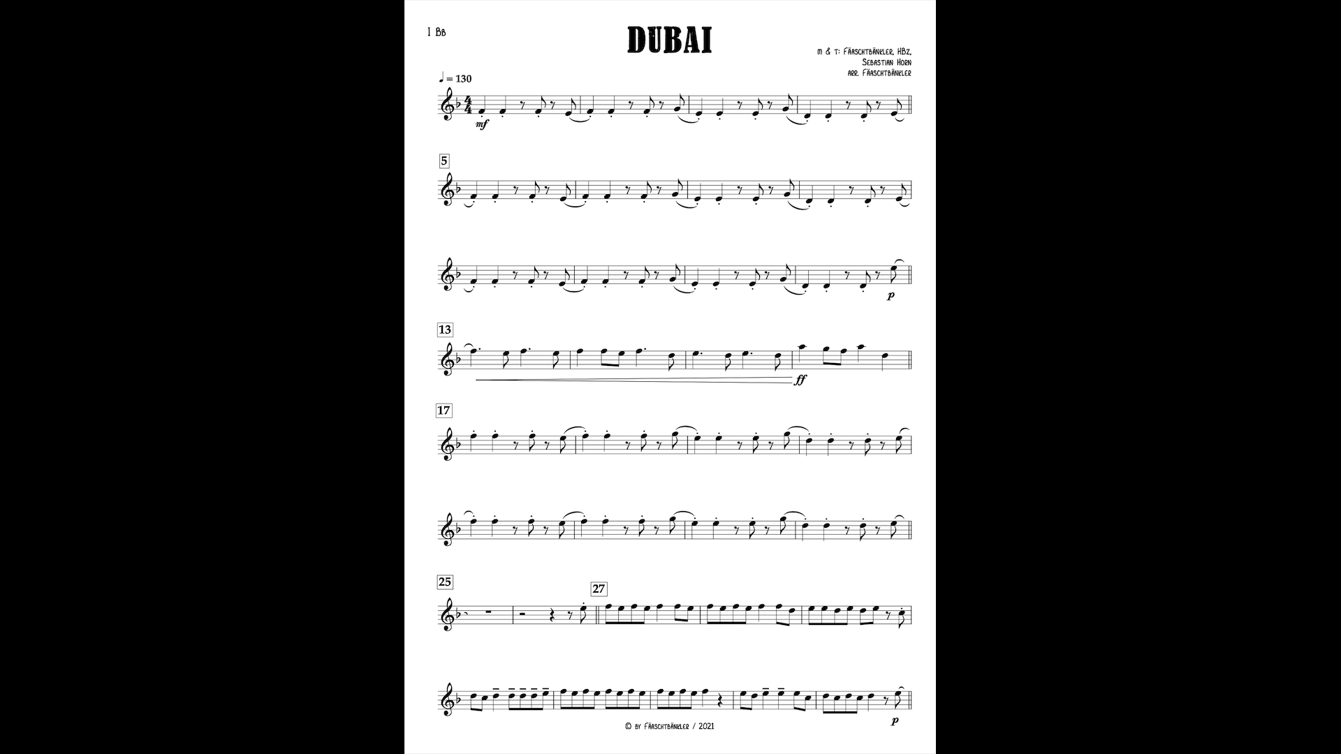 Die Noten sind urheberrechtlich geschützt und dürfen nur für den Eigengebrauch (öffentliche & private Aufführungszwecke jeglicher Art) verwendet werden. Vereinsinterne Vervielfältigung ist gestattet. Die Weitergabe der Noten an Dritte ist nicht erlaubt.